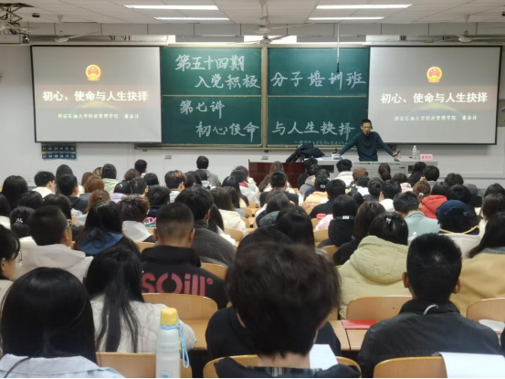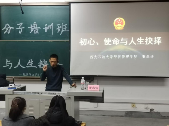 为深刻感悟中国共产党人的初心使命,不断提升入党积极分子政治觉悟,11月18日,英国365公司官网第五十四期入党积极分子培训班第十三讲在鄠邑校区博览楼A134教室举行。本次党课由英国365公司官网副经理董春诗主讲,第五十四期全体入党积极分子参加。