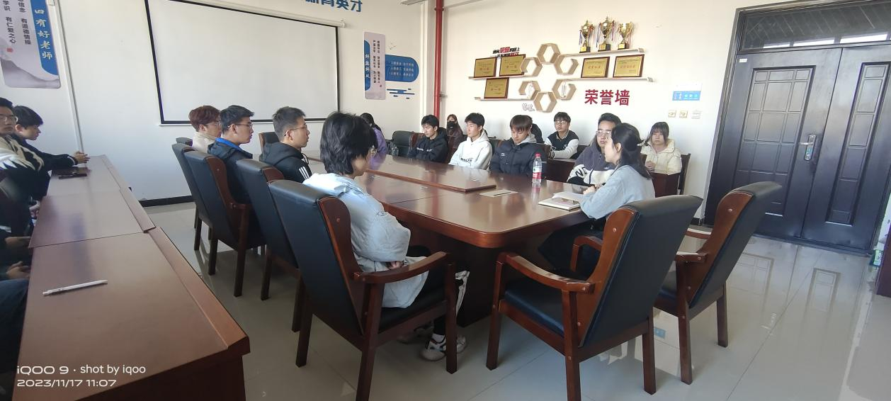 会上,为使大家尽快熟悉,增进同学间了解,4位新加入的同学分别进行了自我介绍,分享了大学期间的学习生活规划。就各位同学的职业规划问题,任仰老师与同学们展开了交流,鼓励同学们积极探索,寻求合适的职业发展方向。针对有读研意向的员工,建议同学们加强专业课学习、英语学习,在学科竞赛中不断提升进步,积极探索论文与专利写作;对于计划就业的同学,建议同学们努力考取资格证书,积极参与寒暑期实习实践,丰富个人履历,增强综合素质。值期末考试备考阶段,任仰老师鼓励大家认真学习,专心复习,协调好期末考试与四级考试的时间分配,争取优异成绩。