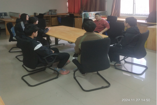 11月27日,巩前胜老师与导师制部分同学在鄠邑校区崇文楼208教室召开了见面会,就同学们这学期学习与生活状况进行了充分交流,询问了同学们课程学习、四六级考试、考研以及找工作的情况。巩前胜老师首先强调了课程学习的重要性,这学期的大部分课程已经接近尾声,同学们要认真复习,查漏补缺,积极准备结课考试,争取获得好的成绩;其次,针对不同年级的同学,要求他们对于现阶段的主要任务一定要有清晰的认识、良好的心态、系统的规划,并分别给出了相应的建议;最后,鼓励同学们在学习之余,积极参加各种学术活动、学科竞赛以及社会实践活动等,不仅可以拓宽知识面,还可以锻炼自身的能力。