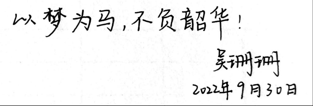 我现在时常会问自己,经过大学三年的生活,我有变成一个更优秀的人吗?我的答案是肯定的。我很感谢悉心教导我的老师和一直鼓励我的朋友,是他们让我变得更加有勇气、有担当、有自信。大学是人生中最美好的时光,我们有着无限可能,我们可以去尽情尝试。塞缪尔写到,人人心中皆有一台天线,只要你从天上人间接受美好、希望、欢乐、勇气和力量的信号,你就青春永驻,风华常存。愿我们都能在大学中珍惜青春时光,以梦为马,不负韶华。