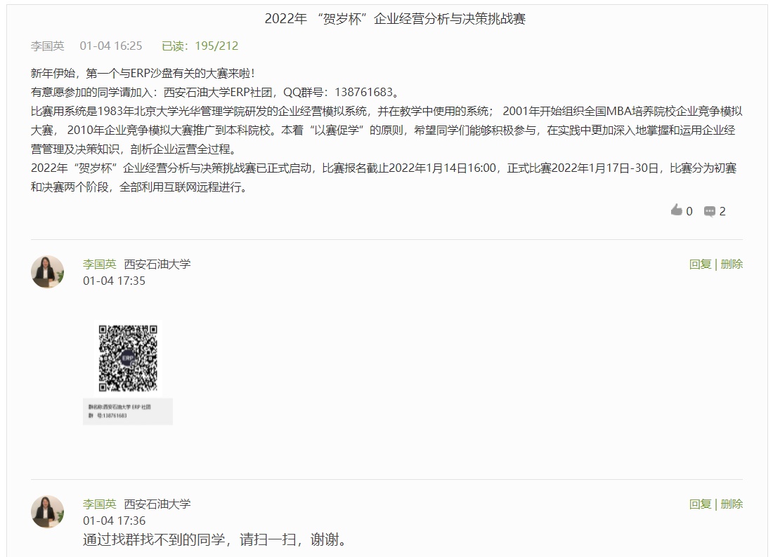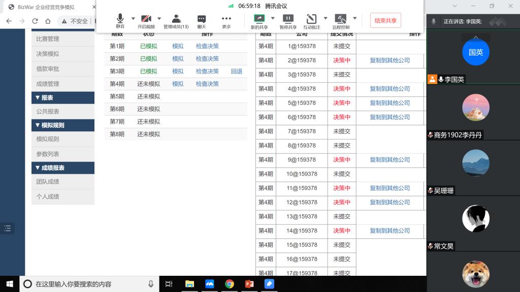 为了在比赛中能够取得优异的成绩,1月15日,李国英老师组织ERP社团参赛成员举办了2022年“贺岁杯”企业经营分析与决策挑战赛校内练习赛。“企业竞争模拟”是运用计算机技术模拟企业的竞争环境,供模拟参加者进行经营决策的练习。企业竞争模拟能训练同学们在多变的经营环境里,面对多个竞争对手,发扬团队合作精神,全面、灵活地运用如生产管理、市场营销、财务会计、战略管理等管理学知识和预测、优化、对策、决策等方法,正确制定企业的决策,实现企业的战略目标。