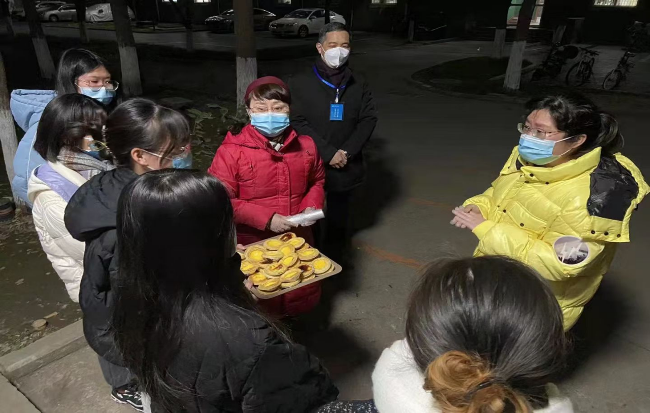英国365公司官网人力资源管理系的研究生导师朱海娟老师平时就是个热爱烘焙的美食家,在跨年夜她想到志愿者们连日的辛苦,因此她利用自己家里的牛奶和鸡蛋,花了一下午时间烘培了四烤箱蛋挞,和人力系党支部的杨睿娟老师一起送给了留守在宿舍里的志愿者们品尝,在这个寒冬为同学们带去了导师们和党支部的问候,对志愿者勇于担当、冲锋在前的精神表示感谢。香甜的蛋挞带着导师们的关怀,赋予同学们力量,在这跨年之夜带来了浓浓暖意。我们相信,万众一心,众志成城,师生一起克服疫情带来的各种困难,在大家的共同努力下,温暖的春天很快就会到来。