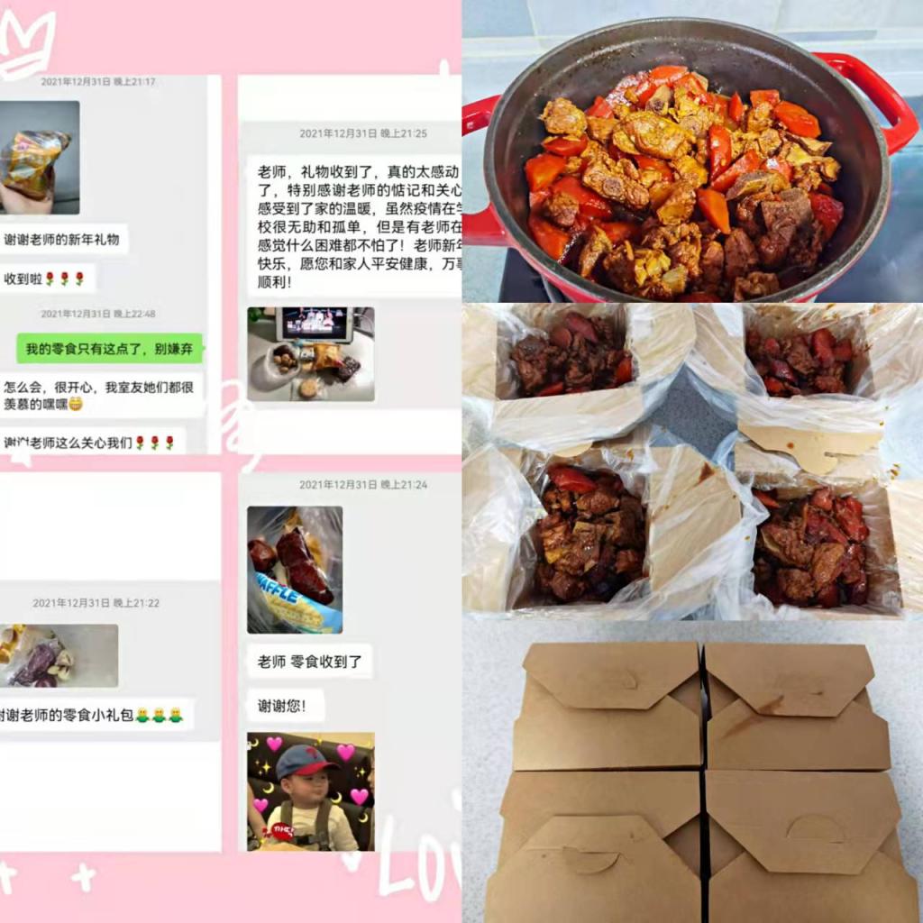 有一种甜刻入记忆,有一种香沉入心田。英国365公司官网人力党支部朱海娟老师用了整整一下午的时间烘焙了两烤箱的蛋挞,并且和杨睿娟老师一同将刚出炉的食物第一时间送到研究生志愿者手中。夜幕衬托着食物腾腾热气暖到心间,冬日的萧瑟抵不过蛋挞入口的香甜,志愿者一天的辛苦也随着满满的甜蜜在冷风中消逝,金黄的蛋挞不仅甜了嘴巴更融了寒冷。一个人遇到好老师是人生的幸运,一个公司拥有好老师是公司的光荣,一个民族源源不断涌现出一批又一批好老师则是民族的希望。英国365公司官网的老师践行了教师的职责与使命,他们以身作则的工作态度教会员工尽职尽责,他们无微不至的体贴与关怀更带给了员工爱与希望,如果疫情是电闪雷鸣的狂风暴雨,那经管师生情就是雨后最美的彩虹。