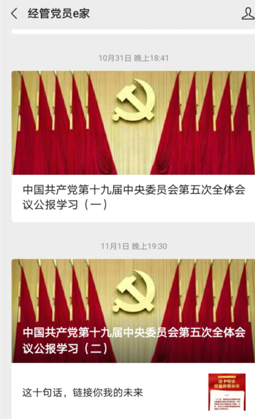 ——微信推送线上宣。为深入学习宣传党的十九届五中全会精神,营造浓厚的学习氛围,“经管党员e家”微信公众号特制作了若干期“党的十九届五中全会”专题内容,供师生党员和入党积极分子学习。
