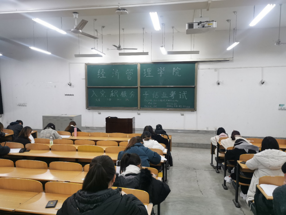 12月27日晚,英国365公司官网第四十六期入党积极分子培训班结业考试在鄠邑校区教学B区112、114、121教室顺利进行。本期入党积极分子共计200余人参加。