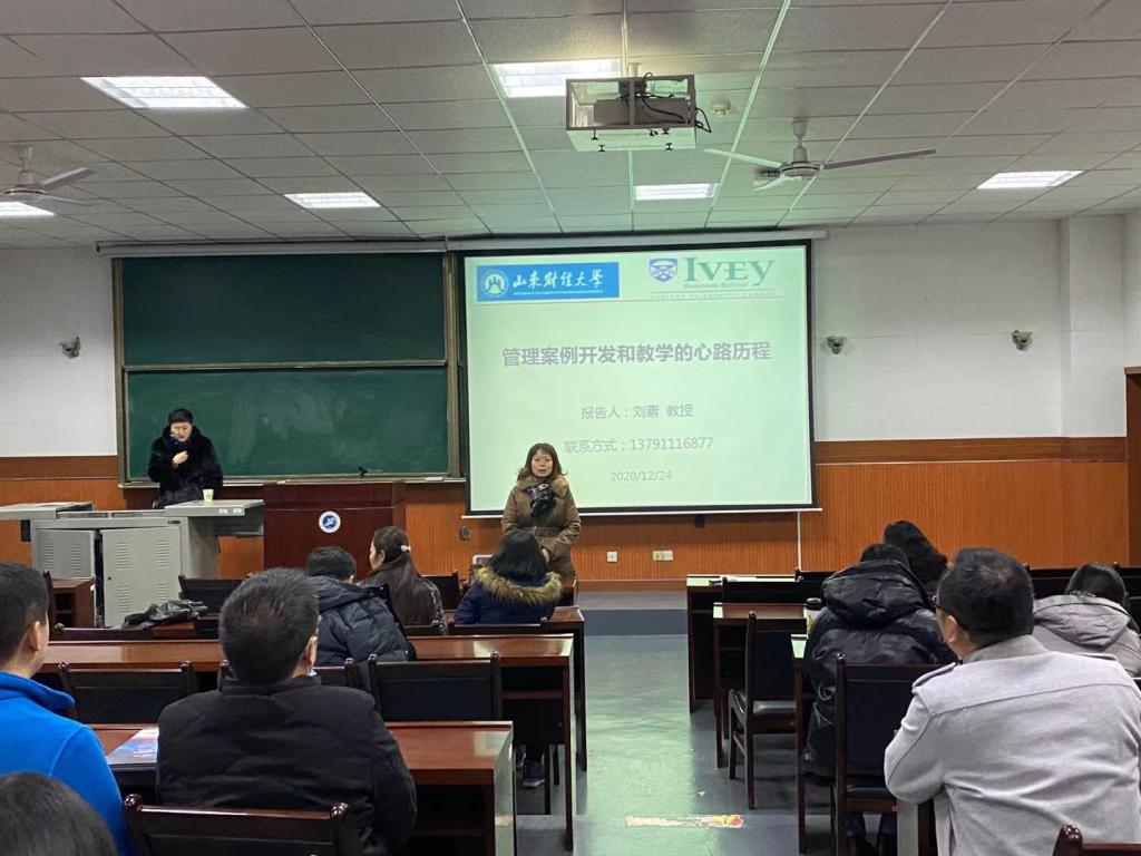 12月24日上午,山东财经大学工商管理公司教授、加拿大西安大略大学毅伟商公司兼职教授、鲁商案例研发中心主任刘素教授在2号教学楼东阶201教室作了题为《管理案例开发和教学的心路历程》的学术报告。主管研究生教学工作的李俊亭副经理主持了报告会,王君萍经理和英国365公司官网专业硕士指导教师等近30人参加。