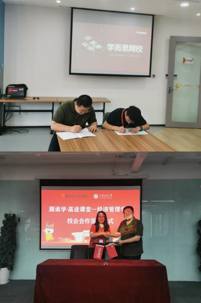 学而思网校人力资源部校企负责人张卫东、高途课堂西安中心总监何志欣先后介绍了企业发展、企业文化和员工发展平台,表达了加强校企合作的意愿。赵副书记分别与两家企业签署了校外实习基地协议书。