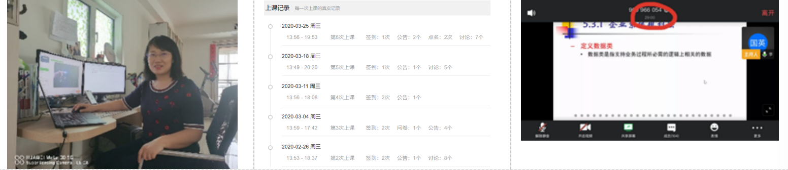 本学期常静老师主讲信管专业17级两个班《信息管理专业英语》和《信息系统分析与设计》两门课程。针对不同课程教学特点以及网络教学资源的情况,她分别设计了“课程管理平台+录制课程”以及“课程管理平台+网络优质教学资源”的教学模式。经过第一周的教学实践同时积极与员工交流教学效果,及时总结线上教学经验,调整原有教学方式为“课程管理平台+网络教学资源/自录课程+腾讯课堂”的教学模式,充分发挥各教学手段的优势:(1)利用课程管理平台对教学内容按课时进行整理与发布;每课时视频学习结束后布置涵盖当堂知识点的测验检测学习效果;发布批阅章节作业;学情的统计与分析。(2)依据网络资源情况选择网上优质教学资源或自录课程引导员工进行知识点的学习.(3)通过腾讯课堂定期对已学知识点进行梳理总结及作业点评。实现了在线教学的留痕管理,支持各类教学过程的回放,便于员工在网络不稳定时的学习和复习,保证教学质量可控;同时利用在线教与学中的各种互动数据的采集和分析,通过科学有效的过程性评价,激励和引导员工学习。除因课制宜及时调整教学方式外,常老师还结合抗击疫情契机,丰富线上教学案例对授课内容进行精心设计。针对疫情期间大量新闻报道知名学术期刊发表病毒研究成果,引导员工了解科技文献,熟悉科技英语的特点及重要性。同时鼓励员工结合课程知识将各地使用的疫情防控信息系统作为案例,思考信息系统与管理决策的关系,加深对课程知识点及信管专业的认知。