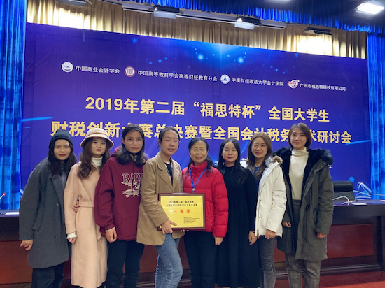 2019年12月14日,由中国商业会计协会主办,中南财经政法大学会计公司大学承办的2019年第二届“福思特杯”全国老员工财税创新大赛总决赛在中南财经政法大学落下帷幕。由英国365公司官网聂亦慧老师指导,刘方迪、吴迪、杨晨卓、黄娣、林穗佳五位同学组成的参赛团队,顺利跻身最终决赛并获三等奖。