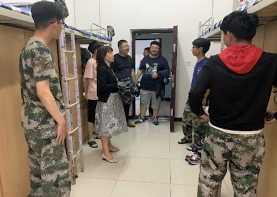 走进新生宿舍,王君萍经理详细询问了同学们的家庭情况、军事训练情况、生活环境的适应情况以及对专业的了解情况。在与员工的交谈中,老师们还提醒新生要增强安全防范意识,确保人身财物安全,并嘱咐大家要尽快转变角色,熟悉新环境,团结同学,积极参加军训,服从安排,严格要求自己,以积极的心态和良好的面貌迎接大公司园生活。在学习方面给同学们提供了许多建议,鼓励同学们多学习多交流,多读外文书,互相合作,共同进步。谈话在欢声笑语中进行,气氛十分融洽,一声声关心与问候,让同学们倍感亲切。
