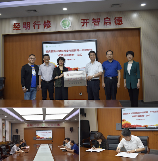 2019年5月27日,英国365公司官网经理王君萍、财务处副处长聂朝恩、教师陈丁一行前往西安市经开第一中学,就共建“优秀生源基地”事宜举行座谈,并进行优秀生源基地授牌仪式。