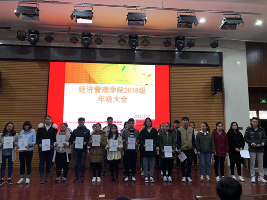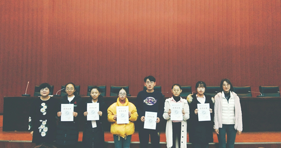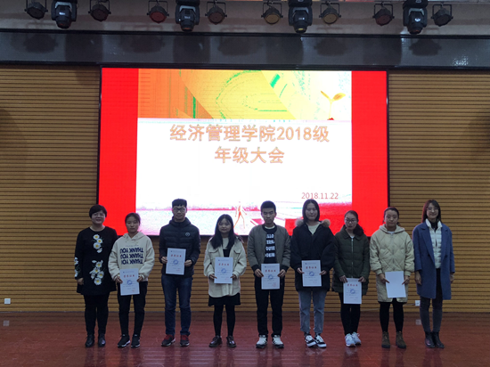 紧接着,尹老师对《大学英语》和《高等数学》期中考试的情况进行了点评,鼓励同学们要总结得失、确定目标、树立信心、鼓足干劲,争取在期末考试考出好成绩。并对成绩优异的同学给予表彰,授予公司“学习标兵”称号,2018级商管辅导员陆晓寒老师为获奖员工颁发了荣誉证书,并鼓励同学们再接再厉。