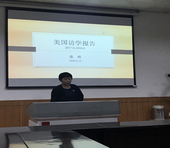 报告会中,张颖慧老师为老师们介绍了访问高校的优势学科、海外教师教学特点、硕博士答辩过程,及与中国高校在教学管理、教学方法等方面的区别;侯晓靖老师着重介绍了美国高校员工学习和娱乐的情况,并就美国高校对教师发论文的要求,教师教学评价等方面的内容进行了评述;李立群老师就路易斯安州州立大学优势学科、公司对高访学者所做的各种学术安排进行了详细介绍,并就其所选修课程情况进行了说明;庞明老师从入境、租房、选修课程、导师交流到访问常青藤名校、华尔街摩根大通金融机构等方面内容进行了详细介绍,给老师们留下了深刻印象。