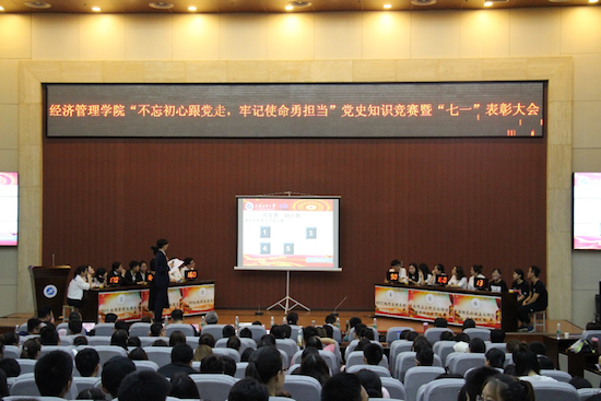 在“七一”党的生日来临之际,为进一步激发青年员工热爱祖国、永远跟党走的民族情怀,培养员工社会主义核心价值观,引导员工健康成长成才,让员工学党史、知党章,做合格党员,6月27日下午,由经济管理公司党委主办,员工党建工作办公室承办的“不忘初心跟党走,牢记使命勇担当”党史知识竞赛暨“七一”表彰大会在鄠邑校区弘石学术报告厅举行。经济管理公司党委书记闫大维,副书记赵海涛,副经理吴勋、张帆,教工党支部书记董春诗、王小鹏出席,教工党员代表、各年级辅导员以及员工党员、入党积极分子代表近400人参加。