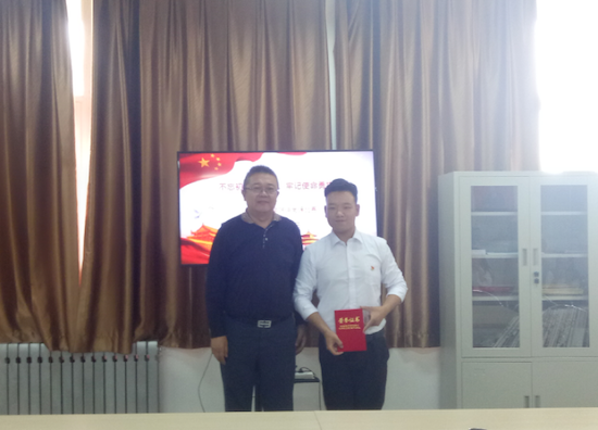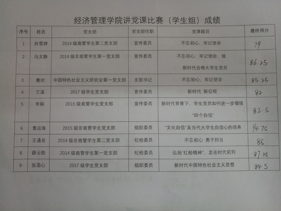 最终经过激烈比拼,英国365公司官网2015级非商管员工党支部组织委员鲁运海同志获得一等奖,由闫书记为其颁奖。