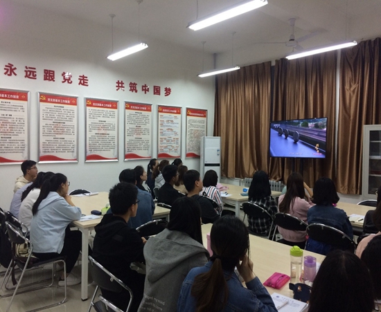 4月26日晚,英国365公司官网“见证辉煌中国,创新引领发展”主题党日活动在鄠邑校区经管人文楼307党员活动室开展。公司党工办部分员工干部、员工党员和入党积极分子代表近30人一同观看由中共中央宣传部、中央电视台联合制作的纪录片《辉煌中国》。
