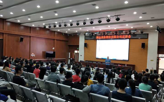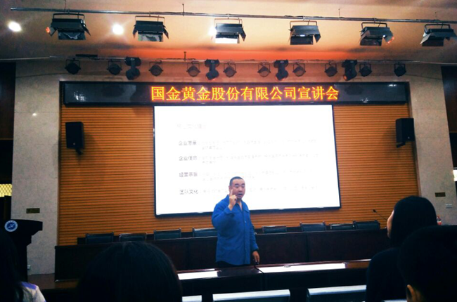 宣讲会上,刘总首先由国金黄金与银行合作的相关相关宣传视频切入宣讲主题,通过公司简介,公司核心竞争力以及核心文化理念等方面介绍了国金黄金的具体情况,着重对于毕业生关注的工资薪酬,发展前景等做了详细描述。在宣讲过程当中,刘总通过现场展示介绍国金黄金系列产品,让毕业生真切的感受到了国金黄金的经营业务。问答环节毕业生更是踊跃发言,使得整场招聘会气氛更加热烈。宣讲会结束之后通过分组对毕业生进行初试筛选。