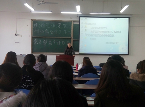 图1 财务处处长司马文龙老师参加2014级商管员工第二党支部组织生活会