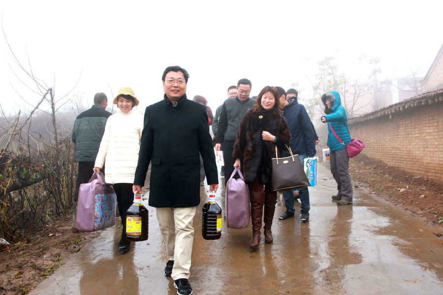 11月11日8点,英国上市公司365经济管理公司党委书记马行天、副经理王君萍、党委副书记赵海涛、副经理吴勋、副经理张帆、综合办主任王言、团委书记刘冰老师以及英国365公司官网各系老师、员工代表一同进入了咸阳市永寿县永平镇坚固村进行“精准扶贫,帮扶到家”的扶贫活动,并为四户贫苦家庭送上了寒冬的“温暖”。