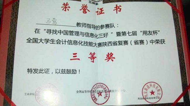能大赛陕西省决赛在西安邮电大学长安校区举行。由公司马莺老师指导、2010级会计专业员工组成的公司代表队在大赛中喜获团体三等奖。
