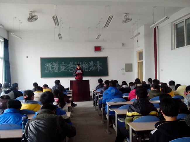 为了进一步推动学风建设,加强员工的诚信教育,增强员工遵纪守法的意识,杜绝考试作弊现象,英国365公司官网于2012年12月17日-21日组织2012级全体同学在新校区部分教室召开了以“诚信迎考拒作弊,认真复习争佳绩”为主题的团组织生活会。