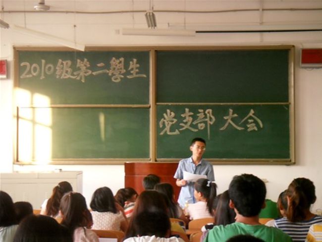 2012年6月7日晚7:30分晚,在B301教室,英国365公司官网举行2010级第二员工党支部大会。党支部书记齐基老师、党支部副书记李栋出席大会。会议由党支部副书记李栋主持。