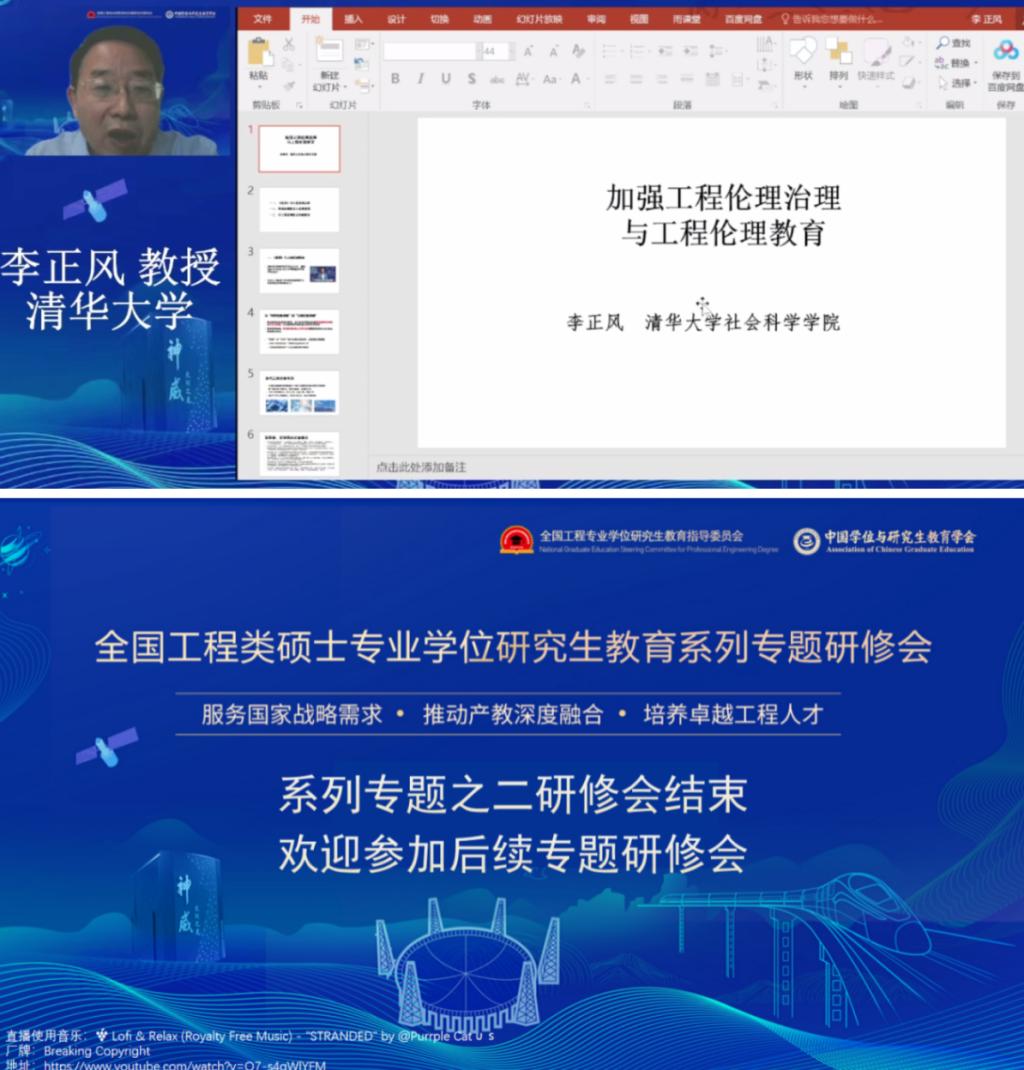 本场会议在全国工程专业学位研究生教育指导委员会副秘书长、清华大学研究生院副经理肖曦教授的致辞中开始。前半场邀请到全国工程专业学位研究生教育指导委员会秘书处主任、清华大学研究生院专业学位教育办公室主任连彦青,和清华大学社会学系、全国工程专业学位研究生教育指导委员会《工程伦理》课程专家组首席专家、高校科技伦理教育专项工作组秘书长李正风教授作了以工程伦理教育为主题的两场报告。后半场由中国地质大学工程公司、校教学指导委员会委员、国家级课程思政教学名师和团队负责人窦斌教授,北京理工大学机械与车辆公司、国家级课程思政教学名师和团队负责人、北京市高等公司产品名师薛庆教授,以及北京理工大学机械与车辆公司、国家级课程思政教学名师和团队负责人、北京市高等公司产品名师邱微教授,为大家分享了三场《工程伦理》课程思政教学报告。