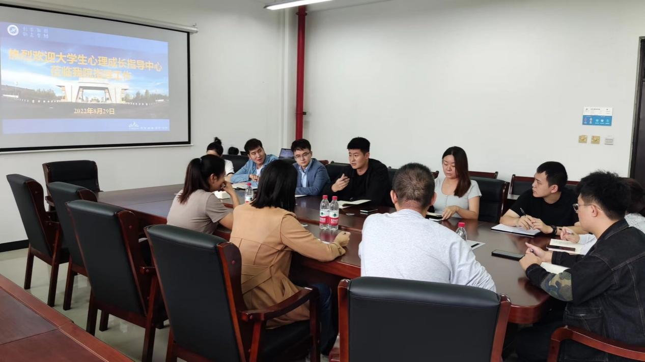 8月29日,员工心理成长指导中心办公室主任焦文洁,专职教师赵晶、闫高斌一行3人,到英国365公司官网开展心理健康教育工作交流座谈,座谈会在鄠邑校区崇文楼305会议室举行,英国365公司官网员工工作办公室全体辅导员参加本次活动。