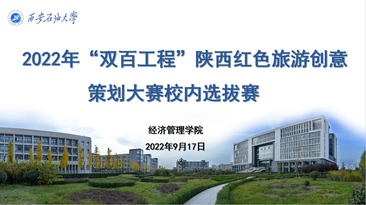 9月17日,2022 年“双百工程”陕西红色旅游创意策划大赛校赛由英国365公司官网负责承办,根据公司疫情防控要求,本次比赛通过线上进行。比赛以“沿着总书记足迹”为主题,以习近平总书记三次来陕考察的延安、铜川、平利、柞水、绥德、米脂等地的红色旅游资源作为重点策划推广对象。