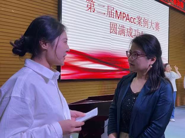 比赛结束后,指导获得特等奖的黄莉老师接受了采访。黄莉老师表示对同学们的表现十分满意,并结合习近平总书记的重要讲话“青年孕育无限希望”,对MPAcc学子抱有信心,同时,希望员工们可以多关注案例研究和国家相关政策的变动,提升分析思维和研究能力,扎实学术功底。