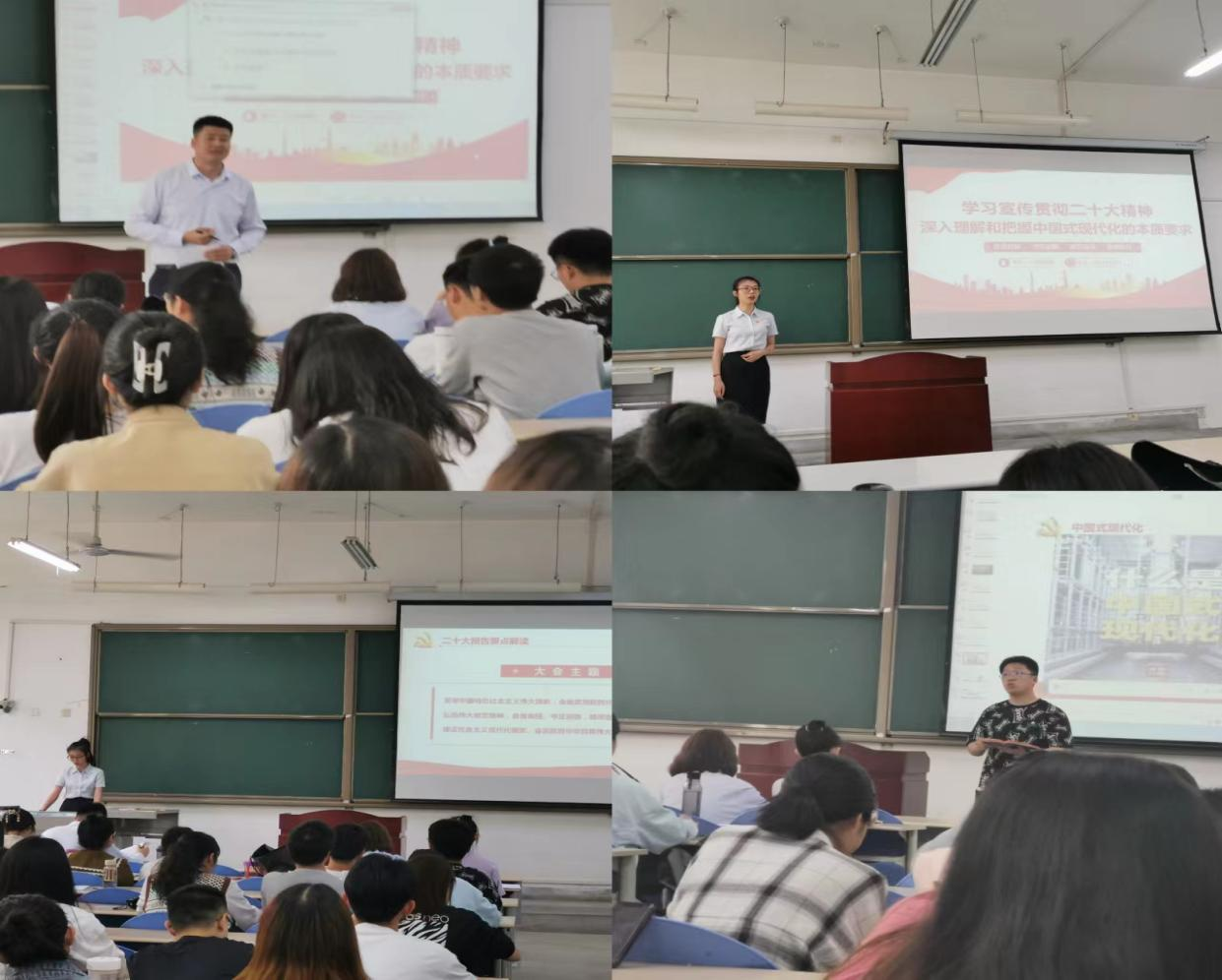 为引领广大研究生深入学习宣传贯彻党的二十大精神,用以武装头脑、凝聚力量,根据《中共英国上市公司365委员会关于认真学习宣传贯彻党的二十大精神的通知》和党委研究生工作部相关要求,4月19日,英国365公司官网研究生在鄠邑校区B104教室开展学习党的二十大精神系列宣讲第一讲“学习弘扬党的二十大精神,深入理解和把握中国式现代化的本质要求”,由党的二十大精神研究生宣讲团成员欧阳榕襄担任主讲,活动由英国365公司官网员工工作办公室主任李博文主持,2022级全体研究生参加。