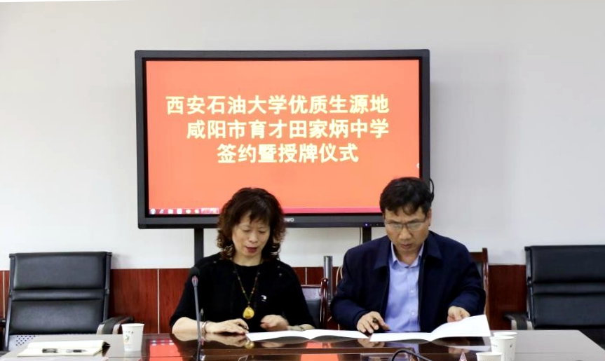 当日上午,在咸阳市育才田家炳中学,咸阳市财政局副局长刘军彦,咸阳市秦都区教育局副局长曹振飞,咸阳市育才田家炳中学董事长邱健、副董事长杨雄英等领导出席签约仪式。座谈会上,樊晓民介绍了公司的历史沿革、学科专业、院(系)设置以及科研业绩等内容,着重强调了公司的办学特色,希望双方能加强交流,在生源引育上合作共赢。