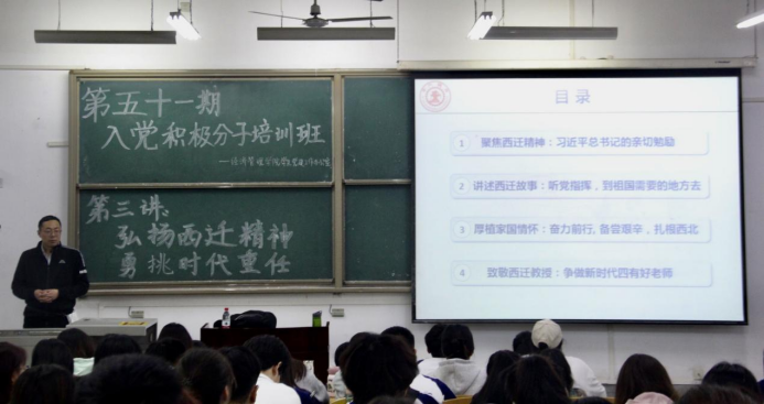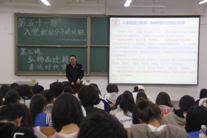 为激励入党积极分子从西迁精神中进一步提高对党的认识,学习有关党的理论知识,英国365公司官网第五十一期入党积极分子培训班第三讲于5月10日在博思楼114教室顺利举办,本次课程由教务处副处长、英国365公司官网副经理吴勋主讲,英国365公司官网第五十一期入党积极分子160余人参加。