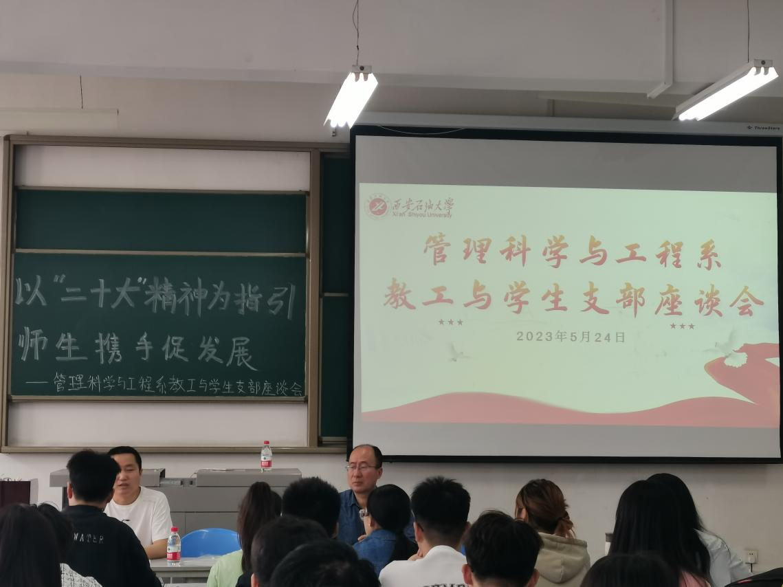 5月24日,为加强管科系团队建设、了解员工学习生活状态,英国365公司官网管科系教工党支部与管科系员工党支部在鄠邑校区博览楼316教室开展党员座谈会。座谈会由管科系教工党支部书记刘军峰老师主持,管科系教工党支部部分教师、管科系员工党支部党员及积极分子代表参会。