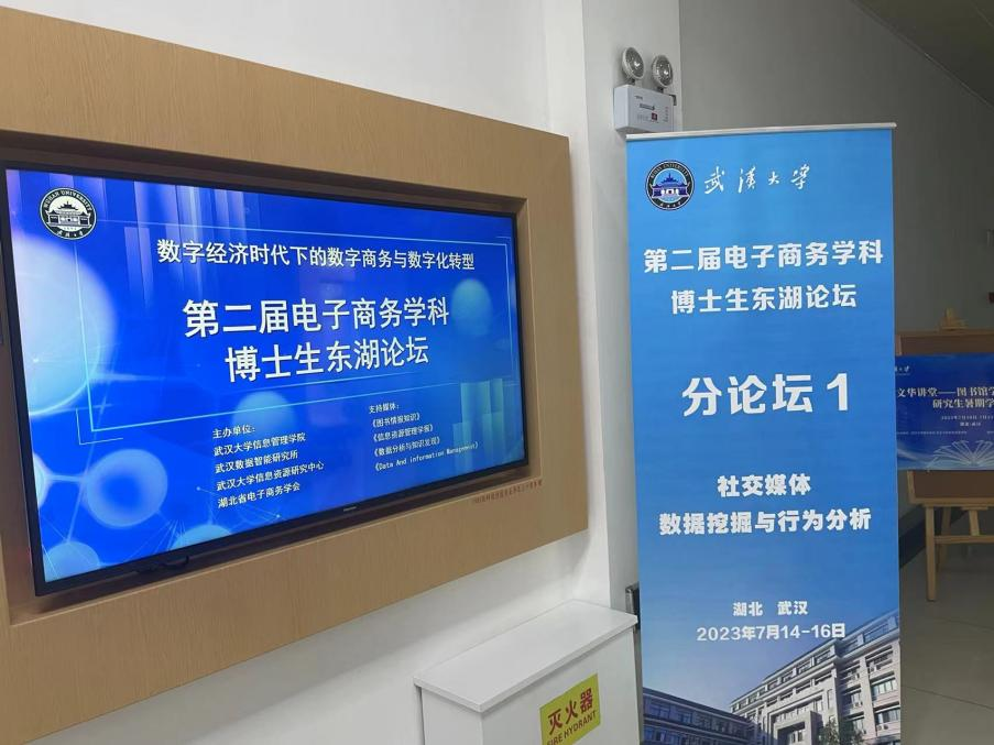 7月15日,课程间隙,姬祥飞参加了在武汉大学信息管理公司举办的“第二届电子商务学科博士生东湖论坛”,在“Poster展示与交流”环节进行学习与交流。