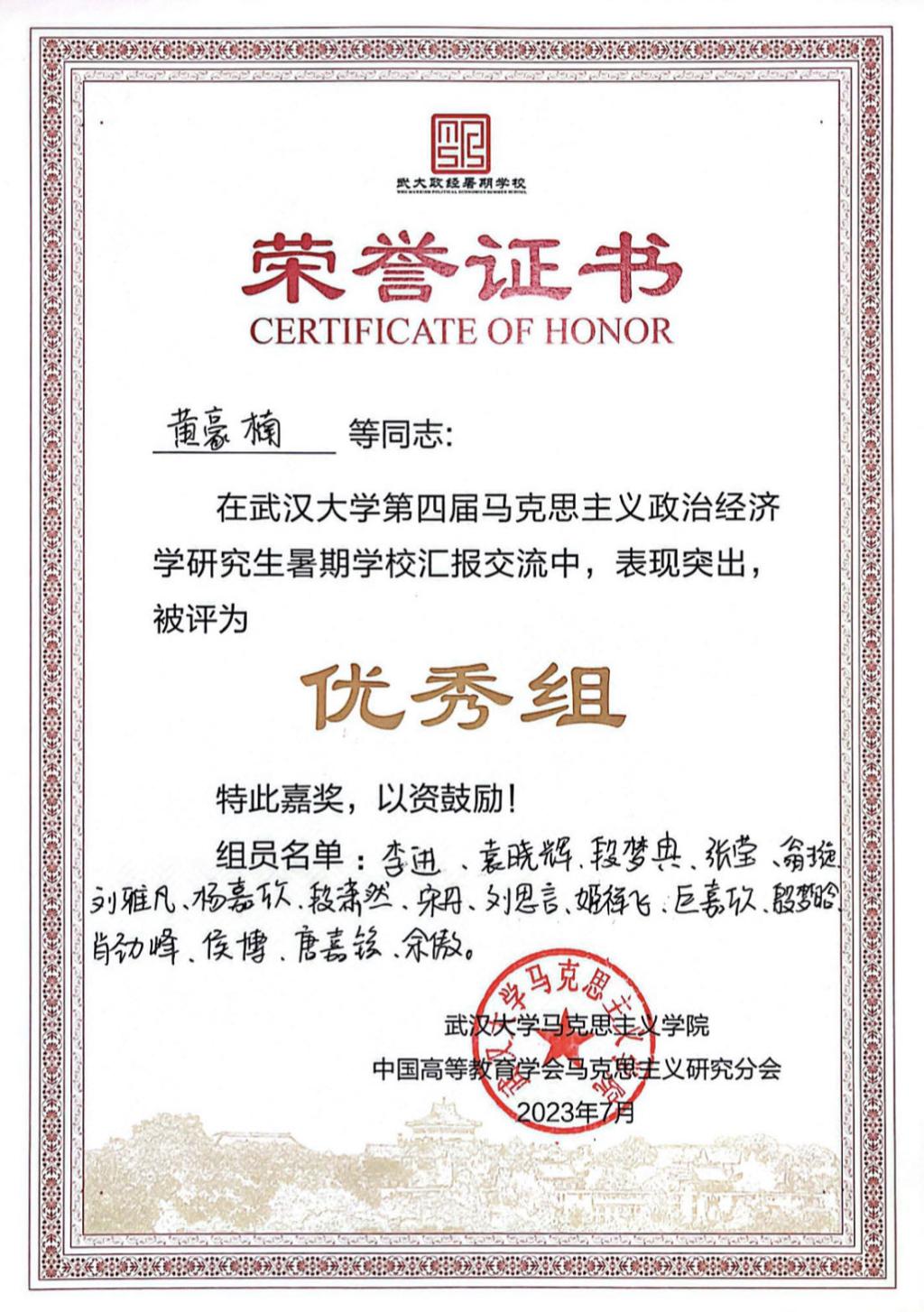 7月12日—21日,由武汉大学研究生院、中国高等教育学会马克思主义研究分会联合主办,武汉大学马克思主义公司承办的“武汉大学第四届马克思主义政治经济学暑期公司”在武汉大学举办。英国365公司官网管理科学与工程专业2022级硕士研究生姬祥飞被录取为正式学员。