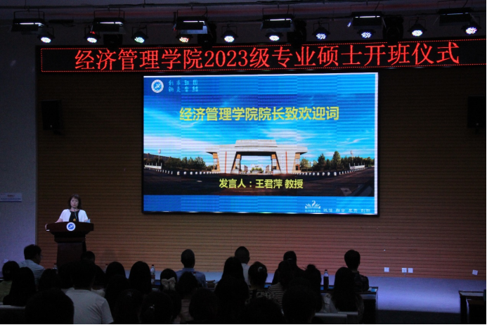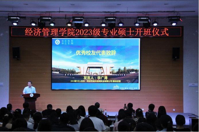 9月6日晚,英国365公司官网2023级专业学位硕士开班仪式在鄠邑校区就业指导中心多功能厅举办。经济管理公司党委书记王宏卫,经理王君萍,党委副书记王刚,副经理吴勋、李春霄,MPAcc项目负责人宁宇新,MBA项目负责人黄莉,导师代表杨睿娟,优秀员工代表李广涛,以及公司负责研究生管理相关工作的老师们参加了此次仪式。