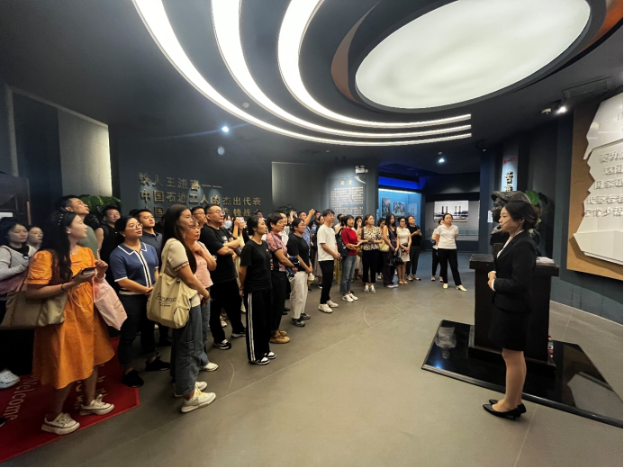 9月6日下午,2023级专业学位硕士齐聚鄠邑校区,由科研与研究生办公室主任武欢和教学秘书陆昕阳带队参观校史馆、铁人馆。参观过程中,同学们仔细聆听讲解,认真领会精神,对公司的发展历史、铁人精神有了更深刻的认识,内心的归属感油然而生。