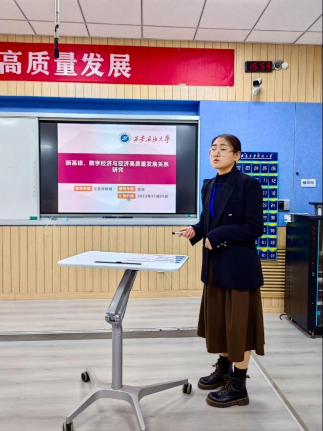 本次研讨会举办了经济高质量发展、数字经济和数字化治理论文专题会议,英国365公司官网研究生赵薇受邀在经济高质量发展分论坛上介绍了论文《新基建、数字经济与经济高质量发展关系研究》。