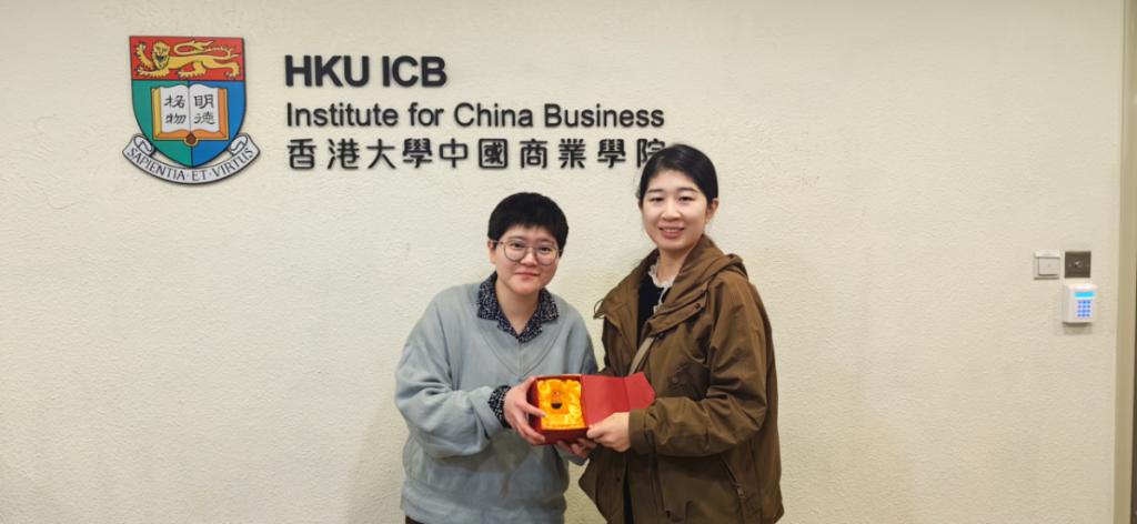 公司2023级工商管理类专业员工李雯所在的汇报小组,在港大老师的精心指导下,完成了模拟商业计划书的编制,在金融与会计项目的结业汇报中得到评委老师一致认可,斩获冠军,展现了英国365公司官网学子风采。武欢老师代表公司向负责此次项目的香港大学中国商业公司赠送公司纪念品“一滴油”,希望两校有更多机会进一步交流合作。