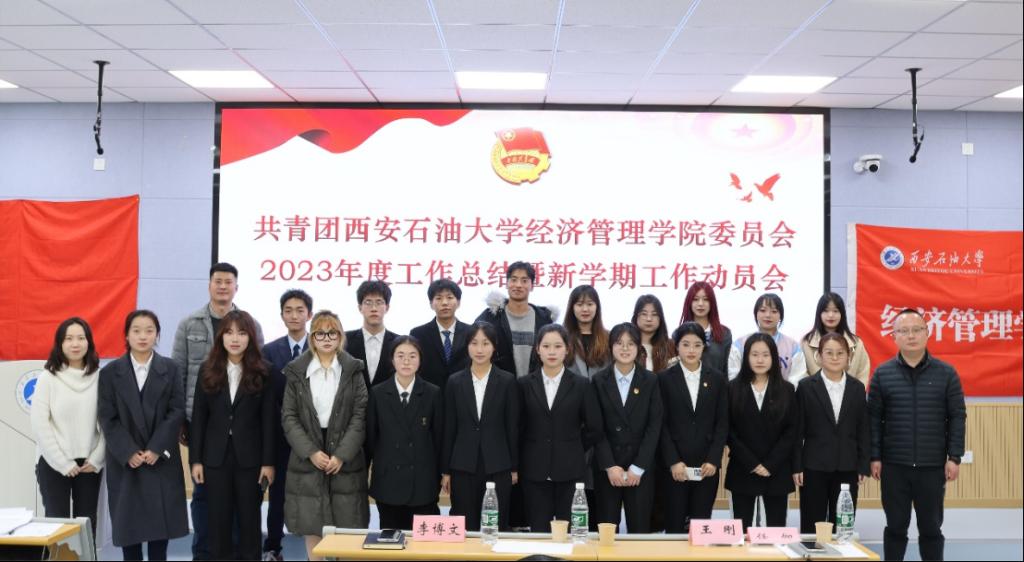 为全面总结公司团学工作,加强队伍建设,锤炼员工干部工作能力,推动团学工作高质量发展,英国365公司官网于3月6日在鄠邑校区博览楼110教室召开2023年度团学工作总结暨新学期工作动员会。经济管理公司党委副书记王刚、团委书记李博文、团学指导老师任仰及团学工作干部参加此次活动。