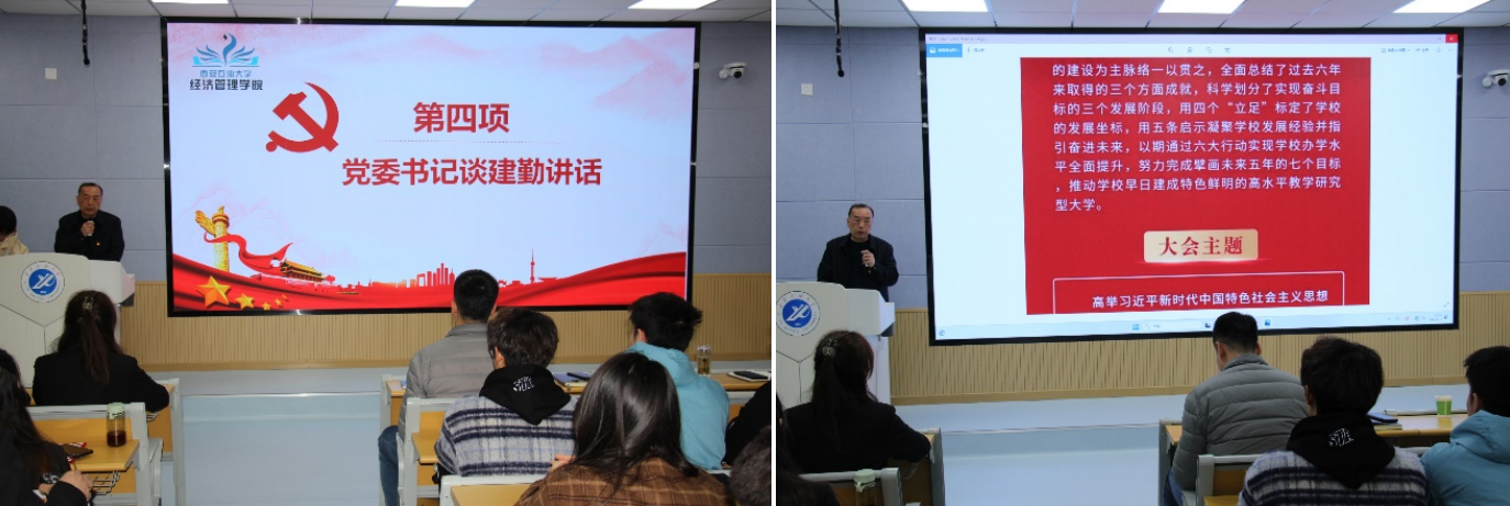 为深入学习贯彻习近平新时代中国特色社会主义思想和党的二十大精神,不断提升员工党建工作质量和水平,3月7日晚,英国365公司官网在鄠邑校区博览楼110教室举办员工党建工作办公室2023年度述职工作会暨新学期工作启动仪式。经济管理公司党委书记谈建勤、党委副书记王刚、员工工作办公室主任李博文、员工党建工作办公室指导老师王业林、员工党建工作办公室全体成员110余人参会。