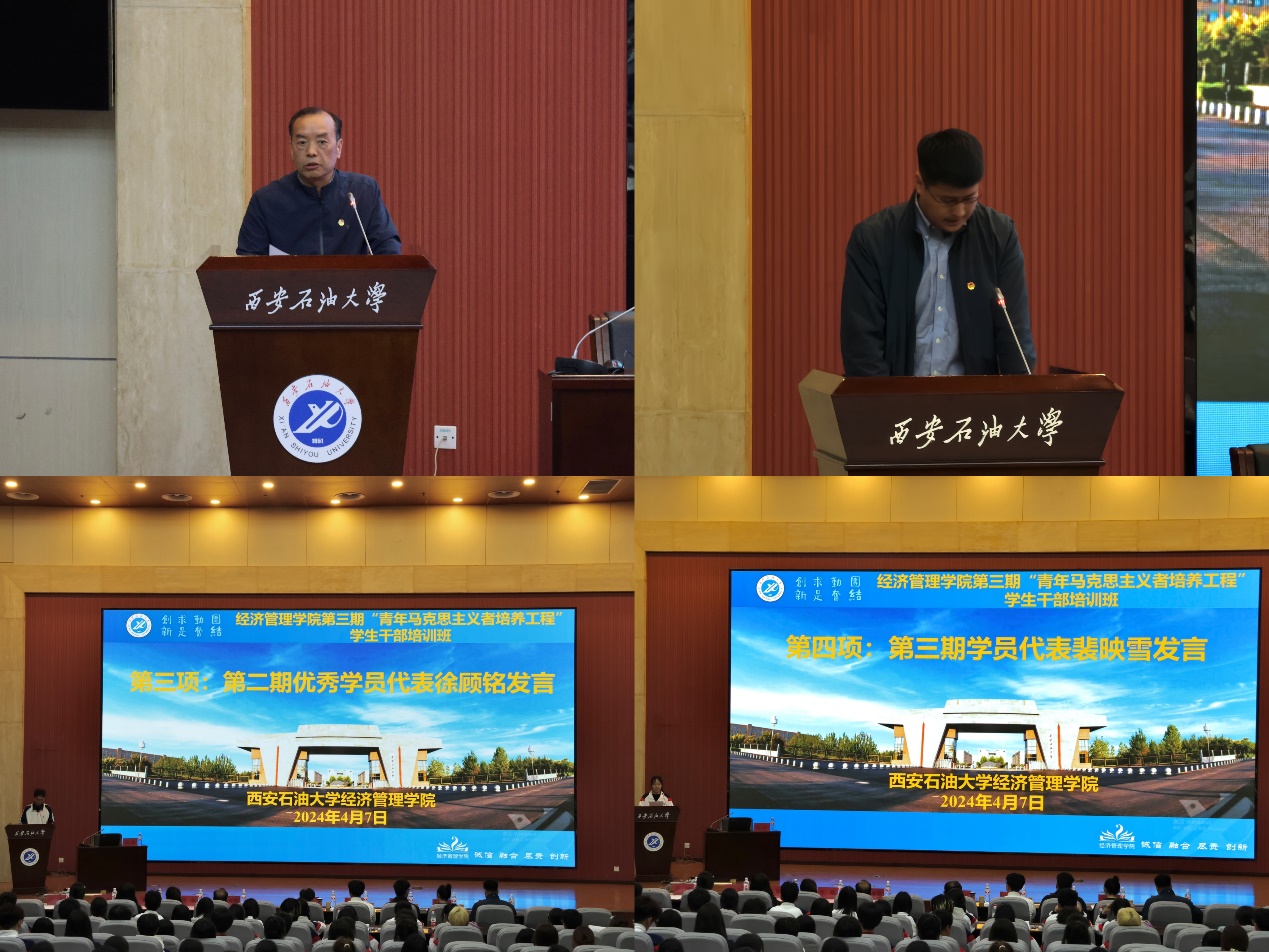 为深入学习贯彻习近平新时代中国特色社会主义思想和党的二十大精神,提高青年员工的马克思主义理论素养和实践能力,引领广大青年做有理想、敢担当、能吃苦、肯奋斗的新时代好青年,4月7日晚,英国365公司官网第三期“青年马克思主义者培养工程”员工干部培训班开班仪式暨第一讲在鄠邑校区弘石学术报告厅顺利举办。公司党委副书记张木出席开班仪式并作专题辅导报告。经济管理公司党委书记谈建勤,全体员工工作干部以及员工干部400余人参加培训班开班仪式暨第一讲。开班仪式由经济管理公司党委副书记王刚主持。