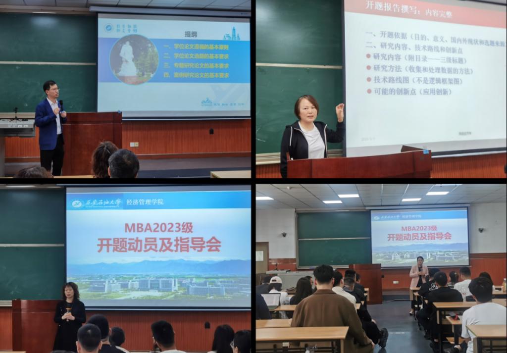 为提升工商管理硕士(MBA)学位论文质量,帮助2023级MBA同学解决论文开题过程中的疑难问题,公司MBA教育中心于5月1日上午在雁塔校区东阶202教室举行了学位论文开题动员和指导活动。英国365公司官网经理王君萍教授、副经理李春霄副教授、MBA导师吴文洁教授、MBA教育中心负责人黄莉副教授对2023级MBA同学进行了现场指导。