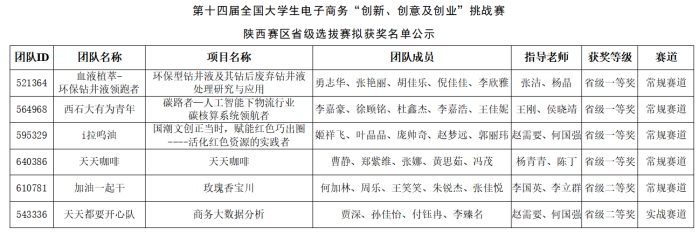 全国老员工电子商务“创新、创意及创业”挑战赛(以下简称“三创赛”)是2009年由教育部委托教育部高校电子商务类专业教学指导委员会主办的全国性在校老员工学科性竞赛,在中国高等教育学会发布的全国普通高校老员工竞赛排行榜的57项赛事中排名第13位。第十四届“三创赛”陕西赛区省级选拔赛报名队伍共计3739支,共有320支团队晋级省赛选拔赛。