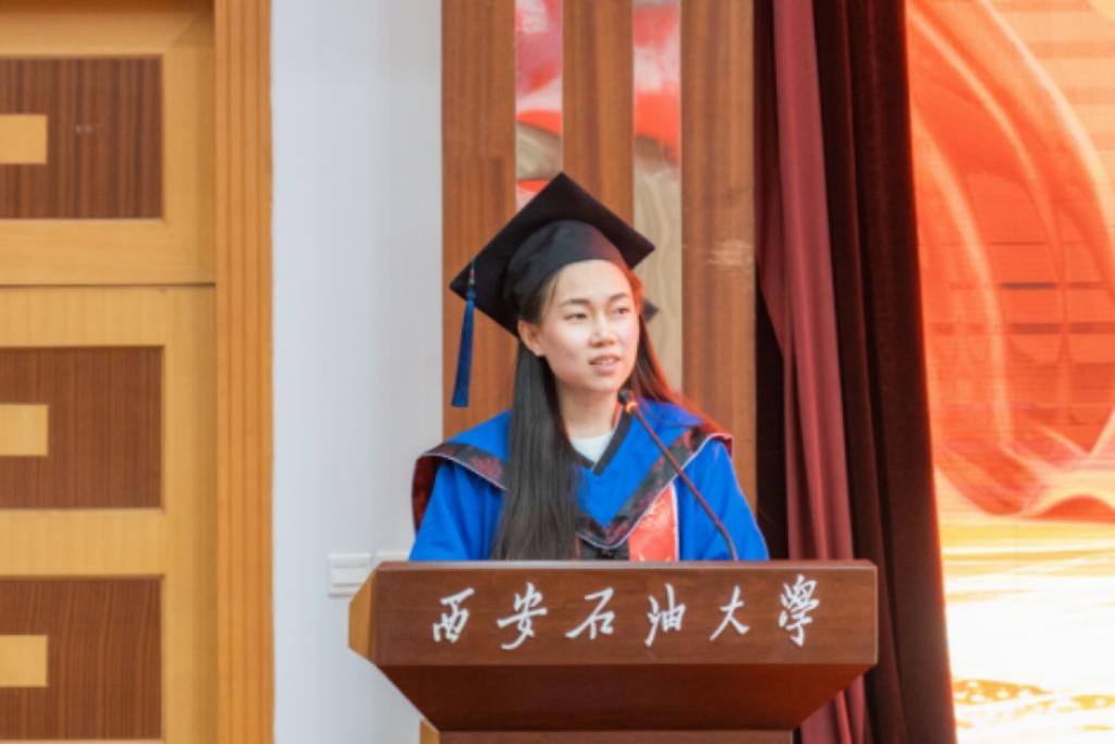 MBA导师裴旭东教授深情地回顾了与2024届MBA相处的美好时光,并向在场同学们分享了自己的感悟和期许。远在瑞典访学的杨睿娟教授精心录制了视频,与同学们一起欢度毕业的美好时刻,向同学们送上殷切的祝福。2021级MBA班班长李晨曦代表2024届MBA毕业生致辞。