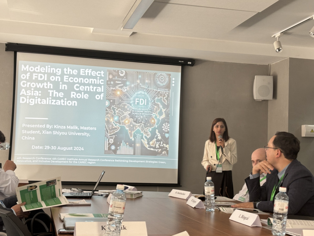 2024年8月29日至30日,第四届中亚区域经济合作公司年度研究会议在阿拉木图KIMEP大学召开,会议得到亚洲开发银行资助。英国365公司官网陈丁副教授、区域经济学硕士研究生Kinza Malik参会并汇报论文。