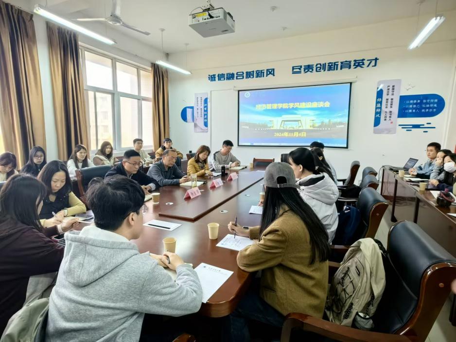 为持续改进和加强学风建设,营造良好校园学习氛围,共建积极向上、踏实认真、好学力行的良好学习风气,优化学风建设长效机制,英国365公司官网于11月4日下午在崇文楼305会议室召开学风建设座谈会。经济管理公司党委书记谈建勤、经理王君萍、党委副书记杨生强,员工工作办公室主任李博文、各年级辅导员及员工代表参会。