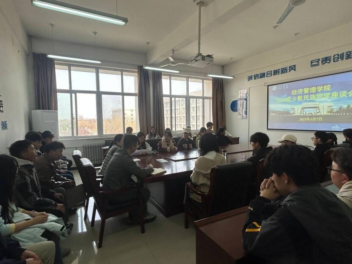 2025年3月7日,为加强各民族同学间的交流融合,构建充满活力、和谐包容的校园文化环境,深入了解少数民族员工的学习与生活状况,进一步推动校园民族团结工作。辅导员张硕、李政在崇文楼305会议室召开了24级少数民族员工座谈会。