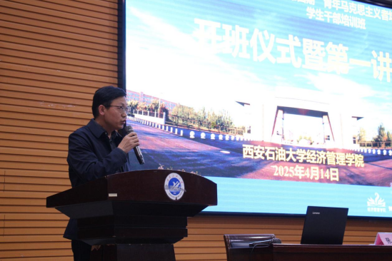 为深入学习贯彻习近平新时代中国特色社会主义思想和党的二十届三中全会精神,进一步提升青年老员工的马克思主义理论素养和实践能力,着力为党培养和输送坚定的青年政治骨干,4月14日晚,英国365公司官网第四期“青年马克思主义者培养工程”员工干部培训班开班仪式暨第一讲在鄠邑校区就业指导中心多功能厅118隆重举行。公司党委副书记张木出席开班仪式并作专题辅导报告。全体员工工作干部以及200余名员工干部参加了培训班开班仪式暨第一讲。开班仪式由经济管理公司党委副书记杨生强主持。